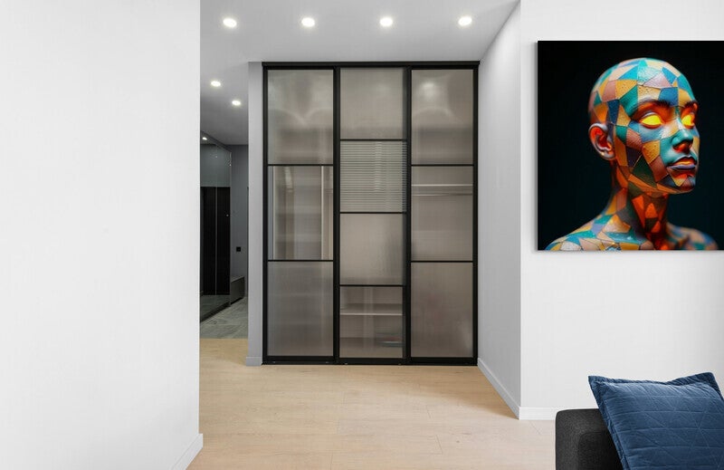 Dit kunstwerk is een eyecatcher die een futuristische sfeer brengt in elke ruimte, van een strakke loft tot een creatieve werkplek.
