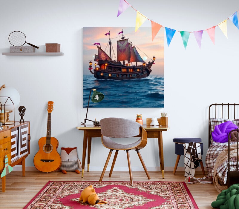 Deze wanddecoratie is de ultieme toevoeging aan een kinderkamer, speelruimte of piraten-themahoek. Laat je kinderen wegdromen naar verre oceanen en magische schatten! ⚓💜