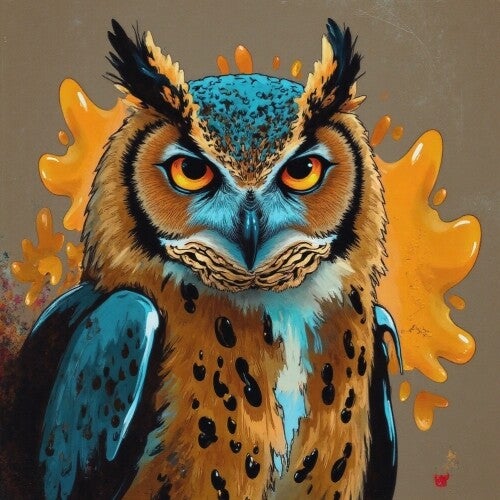 Vurig en Vrolijk – Een Uil met Power en Kleur