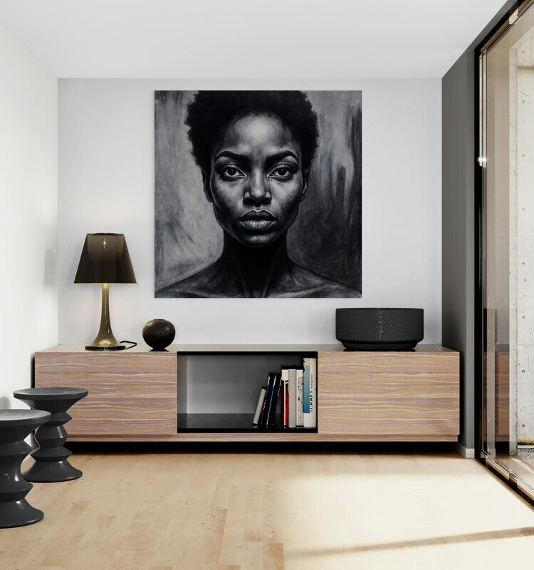 Bold Gaze is een intens zwart-wit portret dat onmiddellijk de aandacht grijpt. De krachtige blik, realistische details en zachte schaduwpartijen maken dit werk zowel rauw als elegant. De expressie is sterk, introspectief en tijdloos.