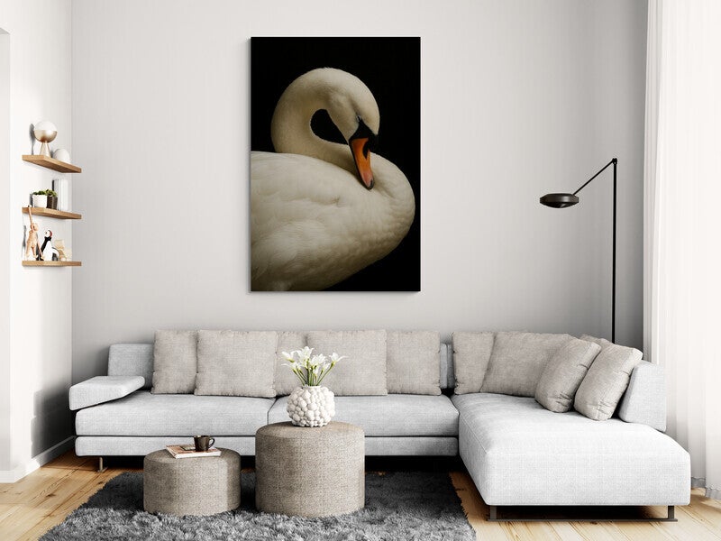 Een tijdloos zwaan schilderij waarin elegantie en rust samenkomen. De sierlijke houding en zachte verenstructuur maken dit kunstwerk tot een stijlvol statement in elk interieur.
