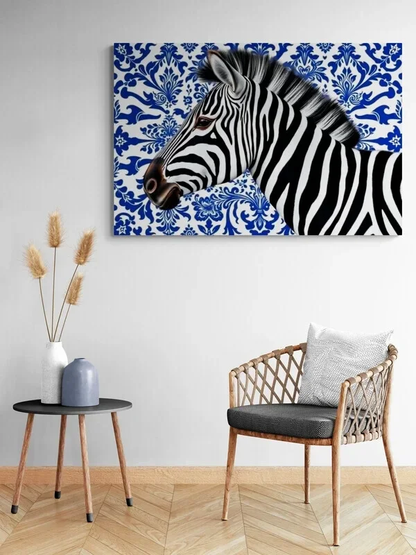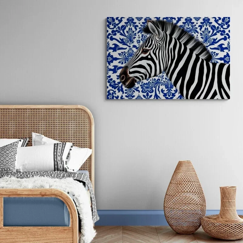Zebra in Delfts Blauw – modern dieren schilderij/🖤 Black Friday
