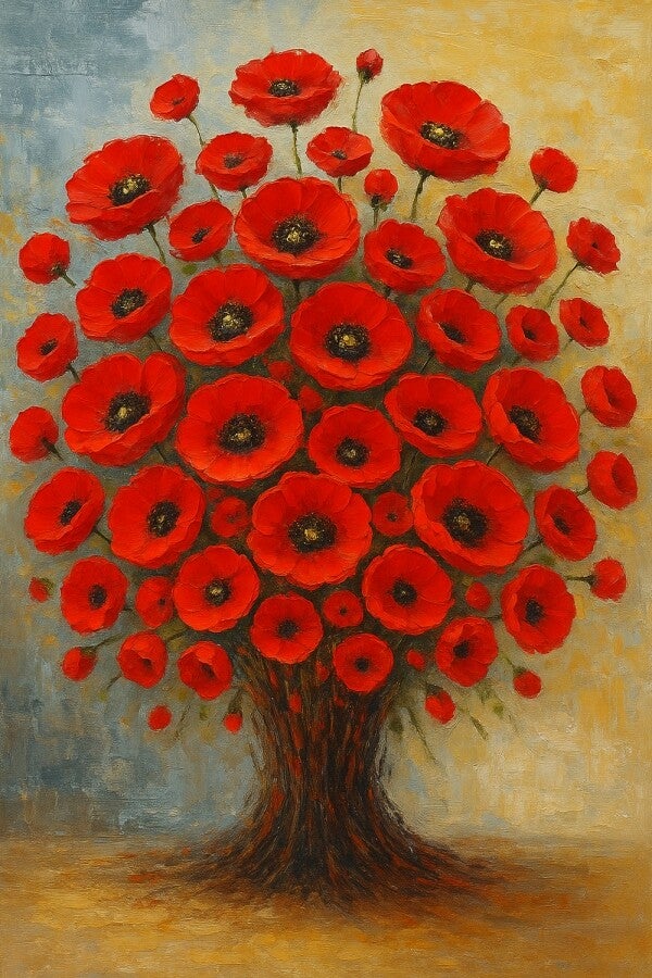 Boom van Bloeikracht – schilderij met klaprozen in boomvorm