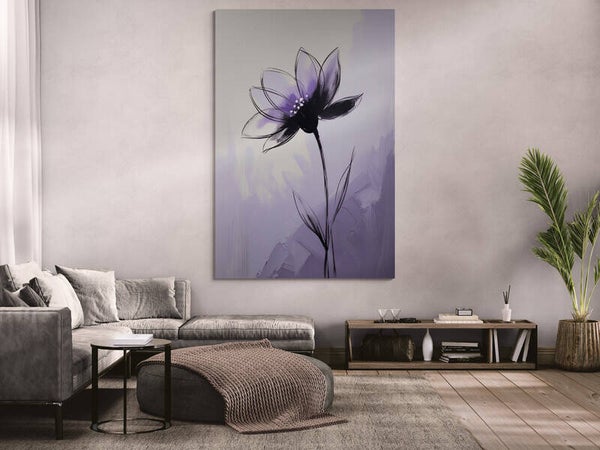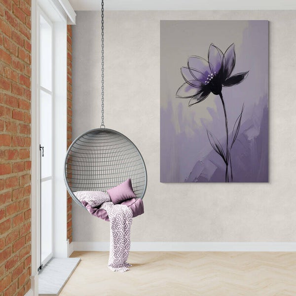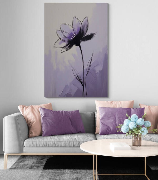 Een zacht en elegant bloemenschilderij waarin een paarse lotusbloem centraal staat. De bloem opent zich sierlijk tegen een abstracte achtergrond van lila en crème, met zichtbare penseelstreken die diepte en rust toevoegen. Subtiele witte accenten in het bloemhart geven het werk een teder detail. Dit moderne kunstwerk straalt sereniteit, vrouwelijke energie en verfijning uit – perfect voor een rustig interieur of slaapkamer.