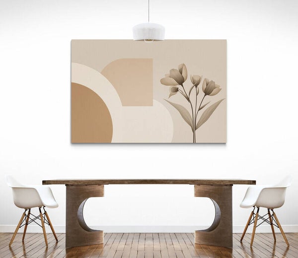 ‘Zilverblad’ is een abstract bloem schilderij met linnenstructuur, uitgevoerd in rustige aardetinten. De verfijnde lijnen en gedetailleerde bladeren geven dit werk een elegante, bijna grafische uitstraling. De bloemen lijken te zweven tegen een achtergrond van zachte vormen en een voelbare linnenstructuur. Subtiel en stijlvol voor wie houdt van tijdloze botanische kunst met een modern randje.