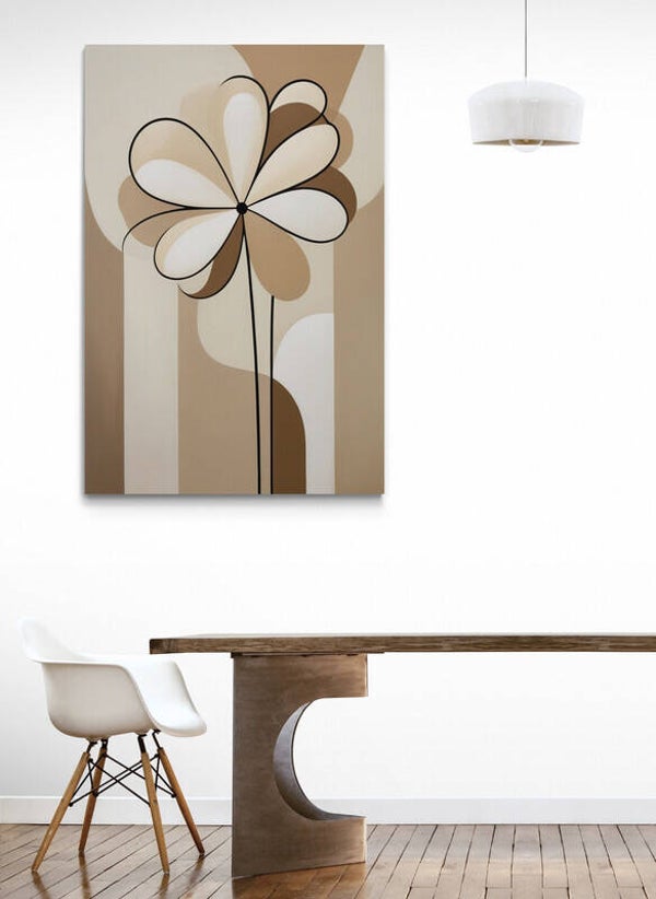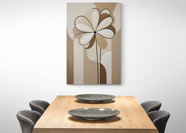 Een bloem die zich opent als een zachte herinnering. Almura vangt de elegantie van ronde vormen in een harmonieus samenspel van crème, zand en taupe. De zwarte lijnen geven het werk een krachtig contrast, zonder de rust te verstoren. Deze compositie past perfect in serene interieurs en ruimtes met een kunstzinnige, rustige sfeer.