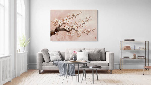Bloesemzacht – schilderij van kersenbloesem op roze achtergrond
