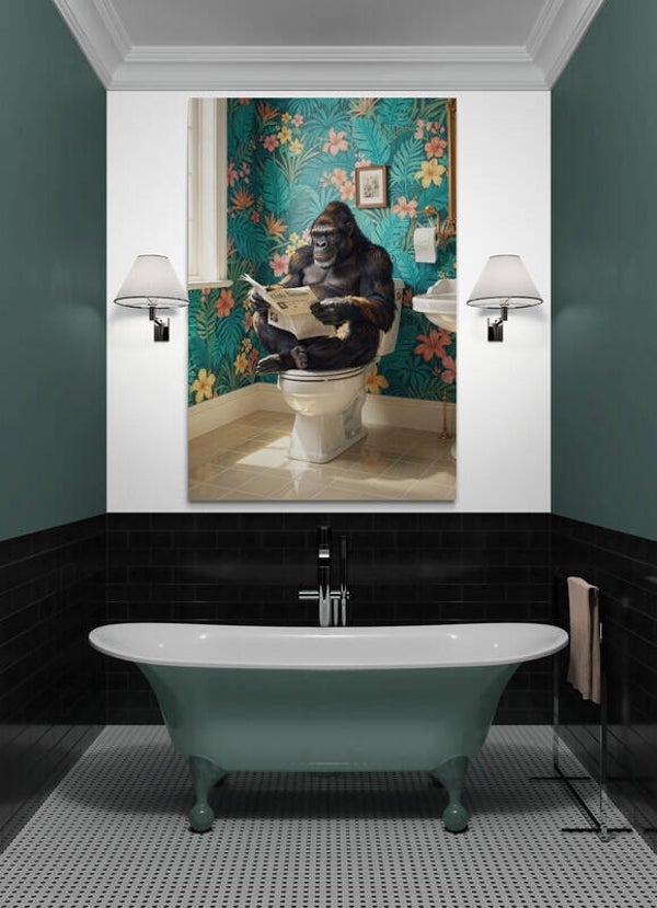 Tropen Troon – stoer schilderij met gorilla op toilet in botanische badkamer