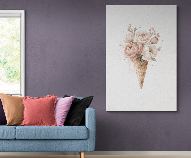Bloemen ijsje – schilderij tienerkamer rozen in ijshoorntje